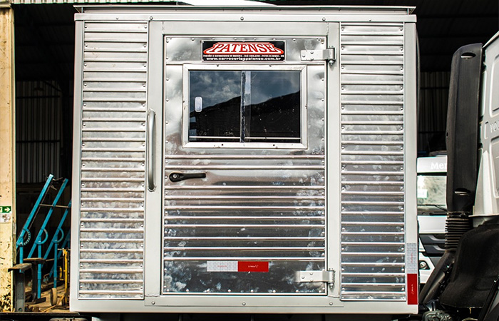 -Portas laterais com sistema de trinco embutido com abertura interna / externa, janela com moldura em alumínio.