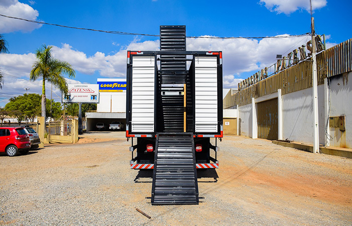 -Corrimão superior nas laterais em aço ASTM A36 perfil “C”; fueiros verticais em perfil “U”.
